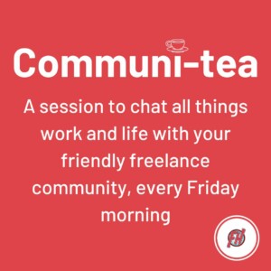 A zoom call will be open for an hour every Friday morning for you to pop in at anytime and leave at anytime. Want to talk about that project you just finished, or that difficult client? No problem. Want to chat about TV, what you ate last night or your upcoming holiday? Also, no problem. We’re here and we’d love to hear about it.