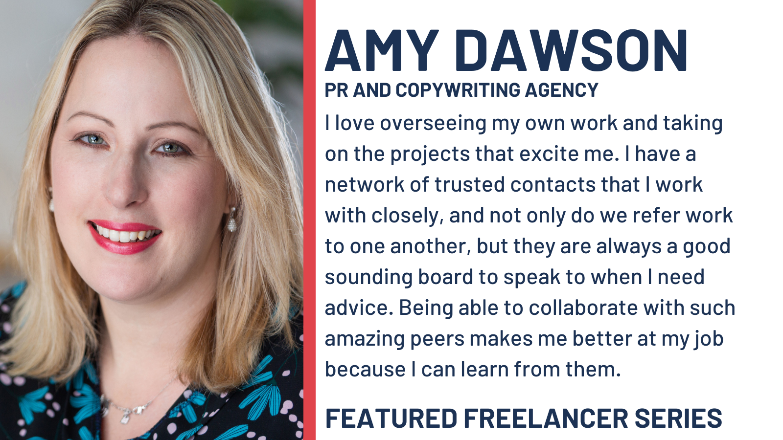 Taking the spotlight this week is Amy Dawson of Gatekeeper Communications, a PR and Copywriting magician with a mission to create buzz around your business. Amy recently celebrated her fourth year of being her own boss and is loving every aspect of it.